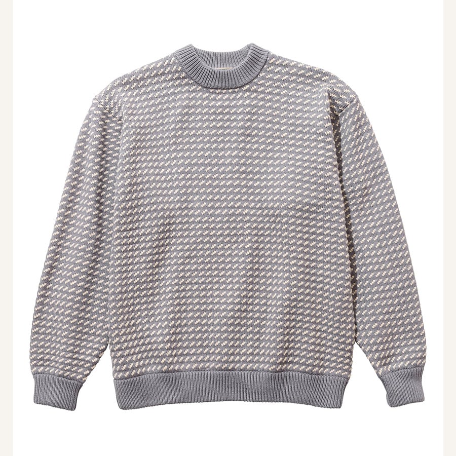 当社のアイコンアイテムの一つ、ウールのバーズアイ・ニットをデザインベースに、軽やかなコットンとポリエステルの混紡糸でアップデート。