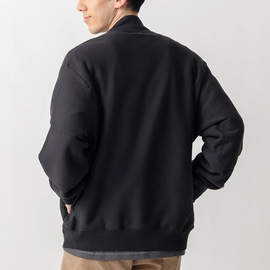90年代の当社のスウェットシャツをデザインベースに、ゆったりとしたジャケット・スタイルにアップデート。表面は綿、裏面はポリエステル・フリース仕立てのオリジナル素材を採用。乾きが速く保温性に優れ、型くずれしにくいのが特長です。秋から春まで3シーズン活躍する一枚です。