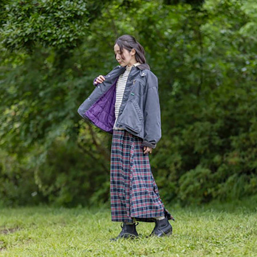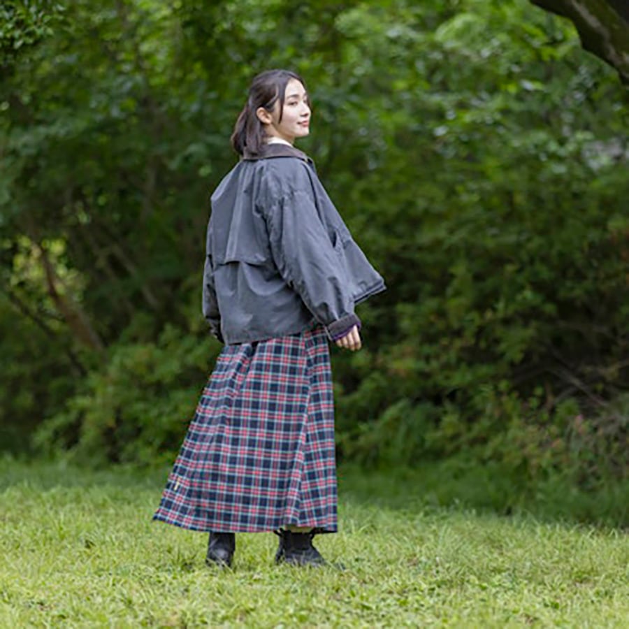 伝統的なキルト・スカートをデザインベースに、洗濯可能な起毛フランネル素材で軽やかに仕上げたロングスカート。糸の断面を六角形にすることで吸水速乾性や色褪せしにくさが長く続き、ポリエステル100%でありながらコットンのようなナチュラルなタッチと風合いを持つ、機能性フランネル素材を採用。クラシックなルックスと快適な履き心地を兼ね備えた一着に仕上げました。