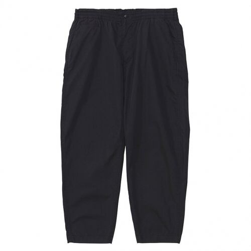 コットンナイロンリップストップ生地を使ったシャーリングウエストパンツ。クライミングパンツを参考にウエストにギャザーとコードを入れデザインしました。ステッチをチェーンステッチにすることで立体感が生まれ、独特な仕上がりです。股上深めでヒップと腿はたっぷりとゆとりを持たせつつ、膝から裾にかけテーパードしたシルエットです。クロップド丈になります。