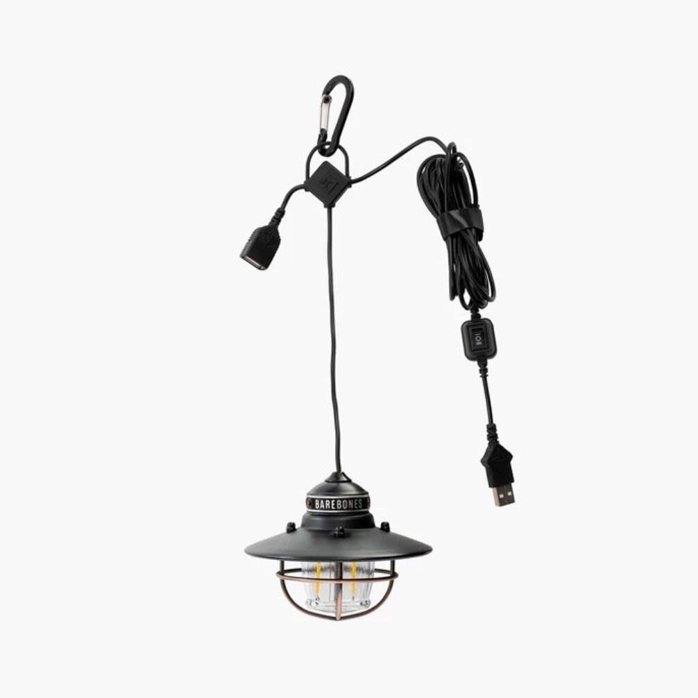 エジソンタイプのLEDを採用し、ベアボーンズリビング製バッテリーやその他のUSB-ACアダプターやUSB バッテリーなどのUSB 電源で使用が可能なペンダントライトです。