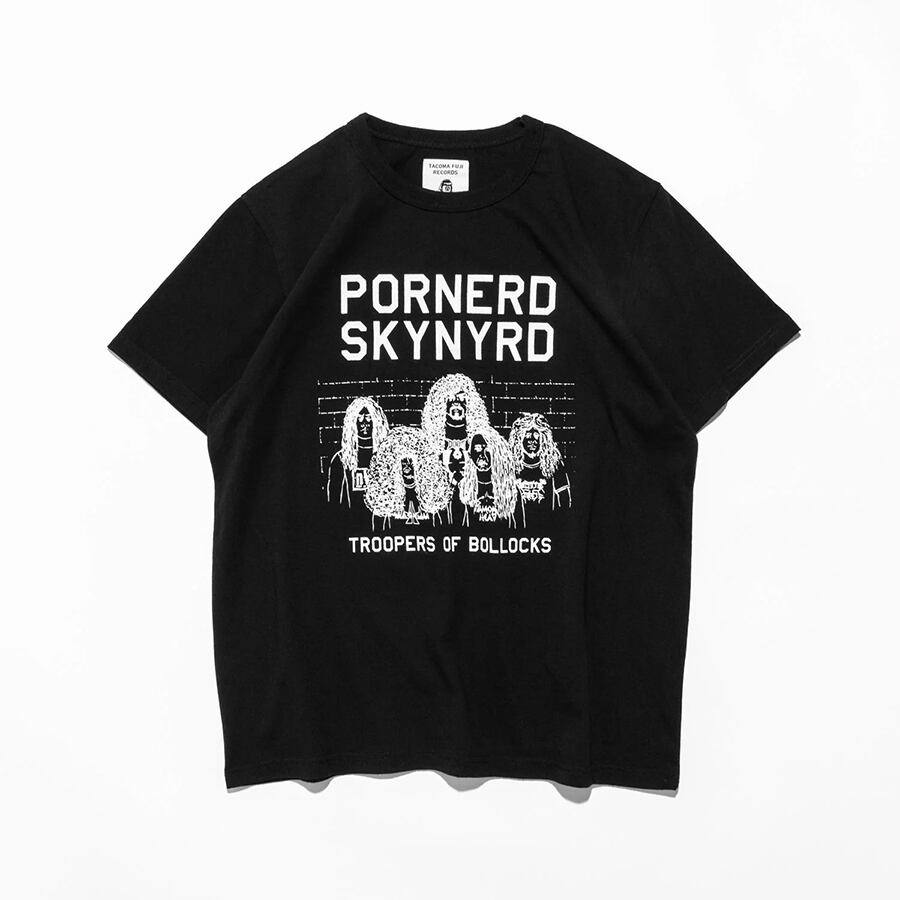 TACOMA FUJI RECORDSタコマフジレコード PORNERD SKYNYRD “TROOPERS OF BLLOCKS” Tee designed by Hiroshi Iguchi- BLACK | Alaska
